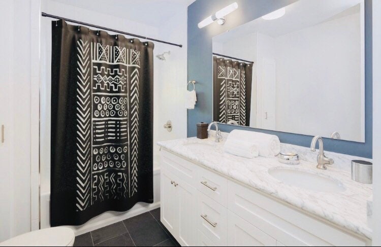Expression of personality has no borders! These quality bogolanfini inspired shower curtains will add culture and class to the most intimate room of your house.